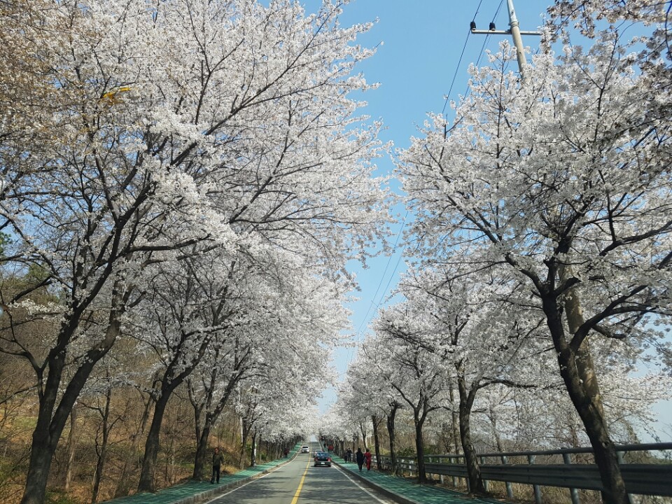 국제대학교에 눈처럼 새하얗게 벚꽃이 피었습니다.