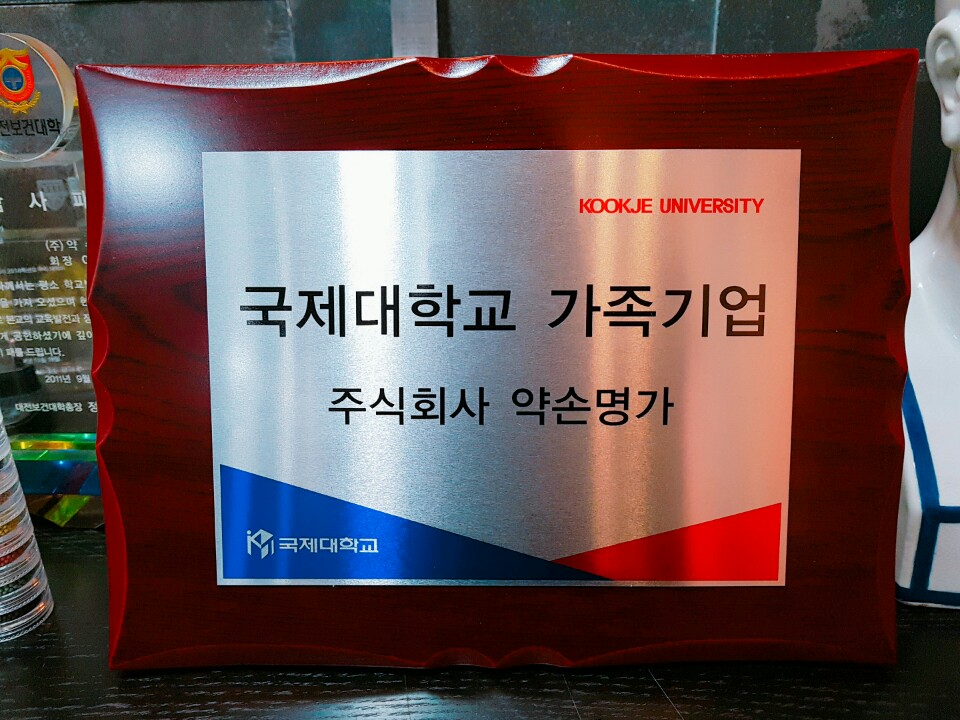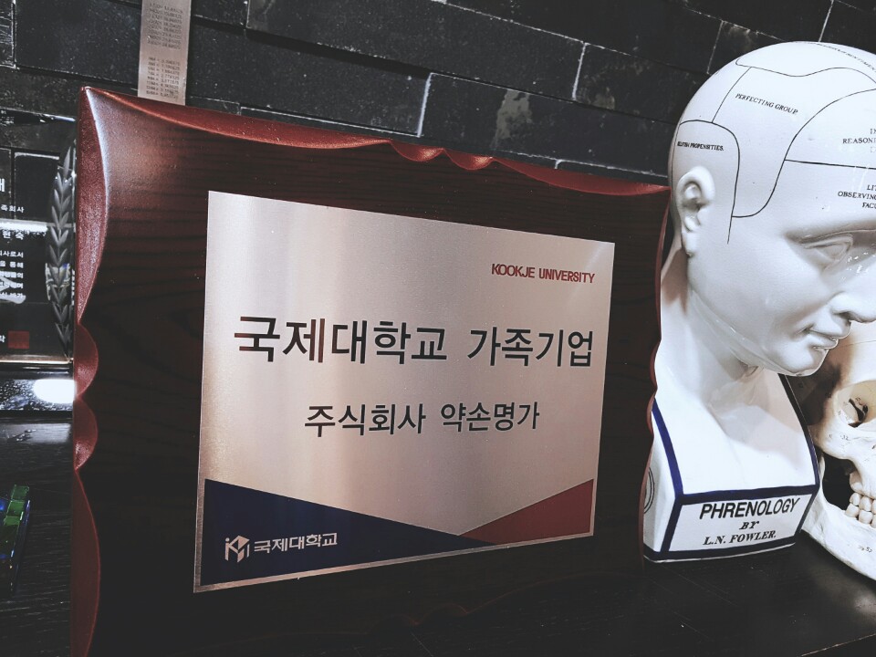 (주)약손명가 본점 약손명가 대표이사실에서 가족회사 협약 현판을 전달해주셨습니다.