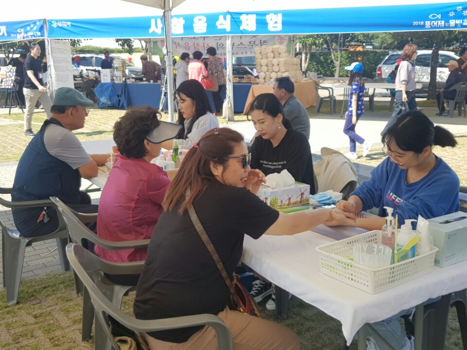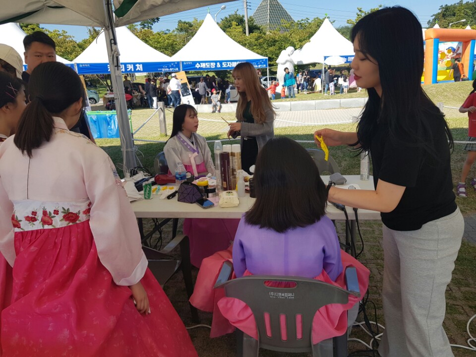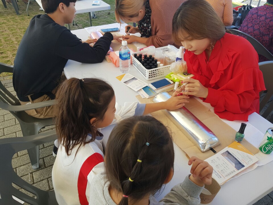 뷰티디자인과 14명의 학생들이 핸드마사지,메이크업,네일아트,헤어셋팅 봉사를