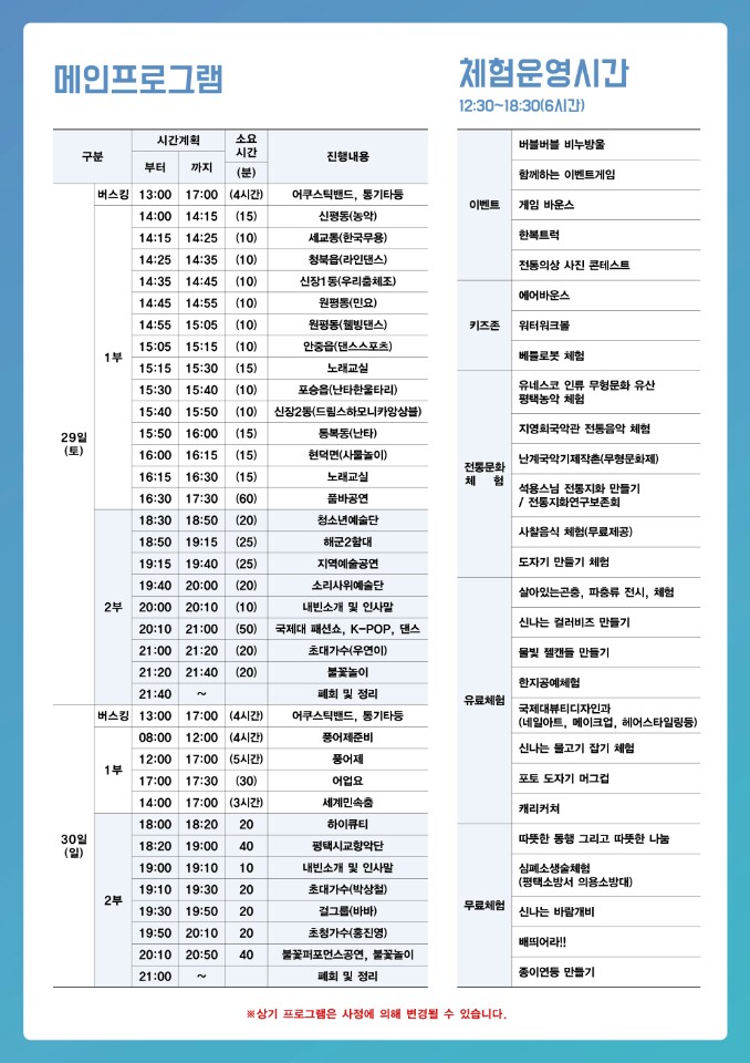 축제 마지막날까지 활기찬 기분으로 평택호 풍어제 및 물빛축제를 진행에 도움을 주기 바랍니다.