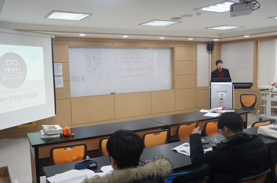 이노티안경체인에서 국제대학교 안경광학과를 위하여 이시훈 팀장님이 직접 방문하여