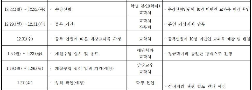 계절학기 수강신청 관련 일정 참고하세요^^